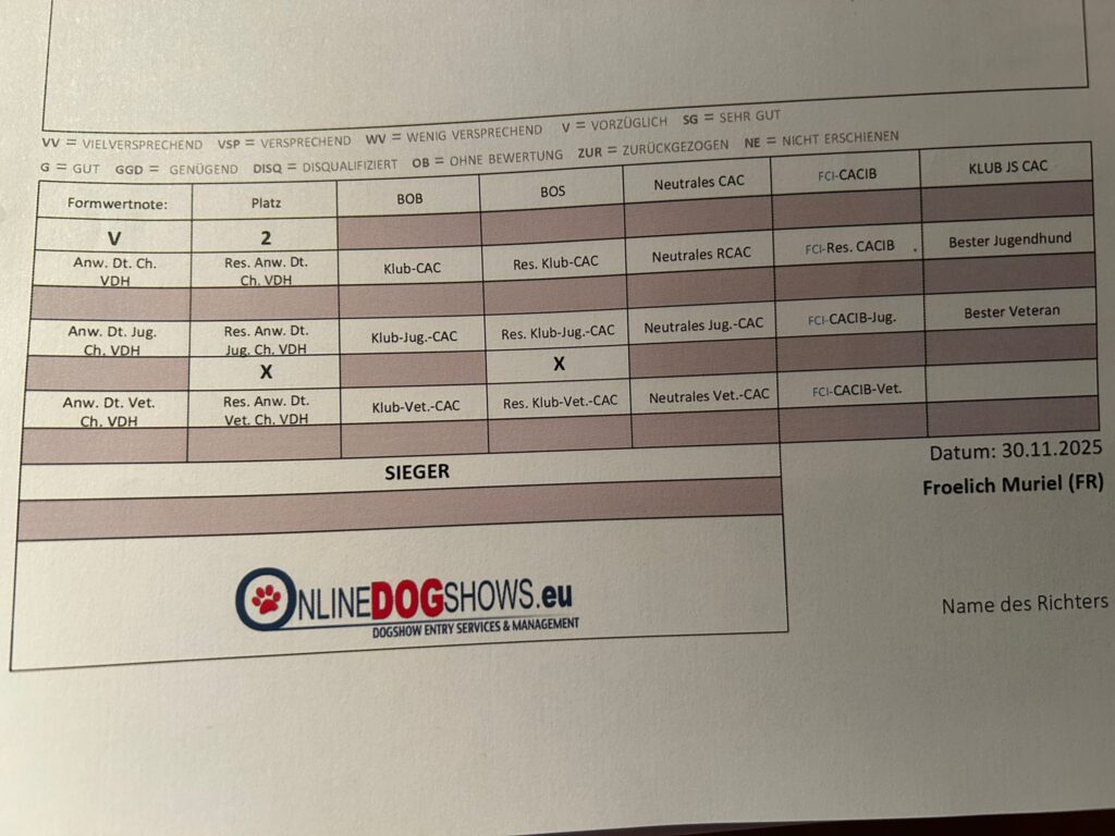 Vom VDH (Verband deutscher Hundewesen) wurde dieses verliehen.